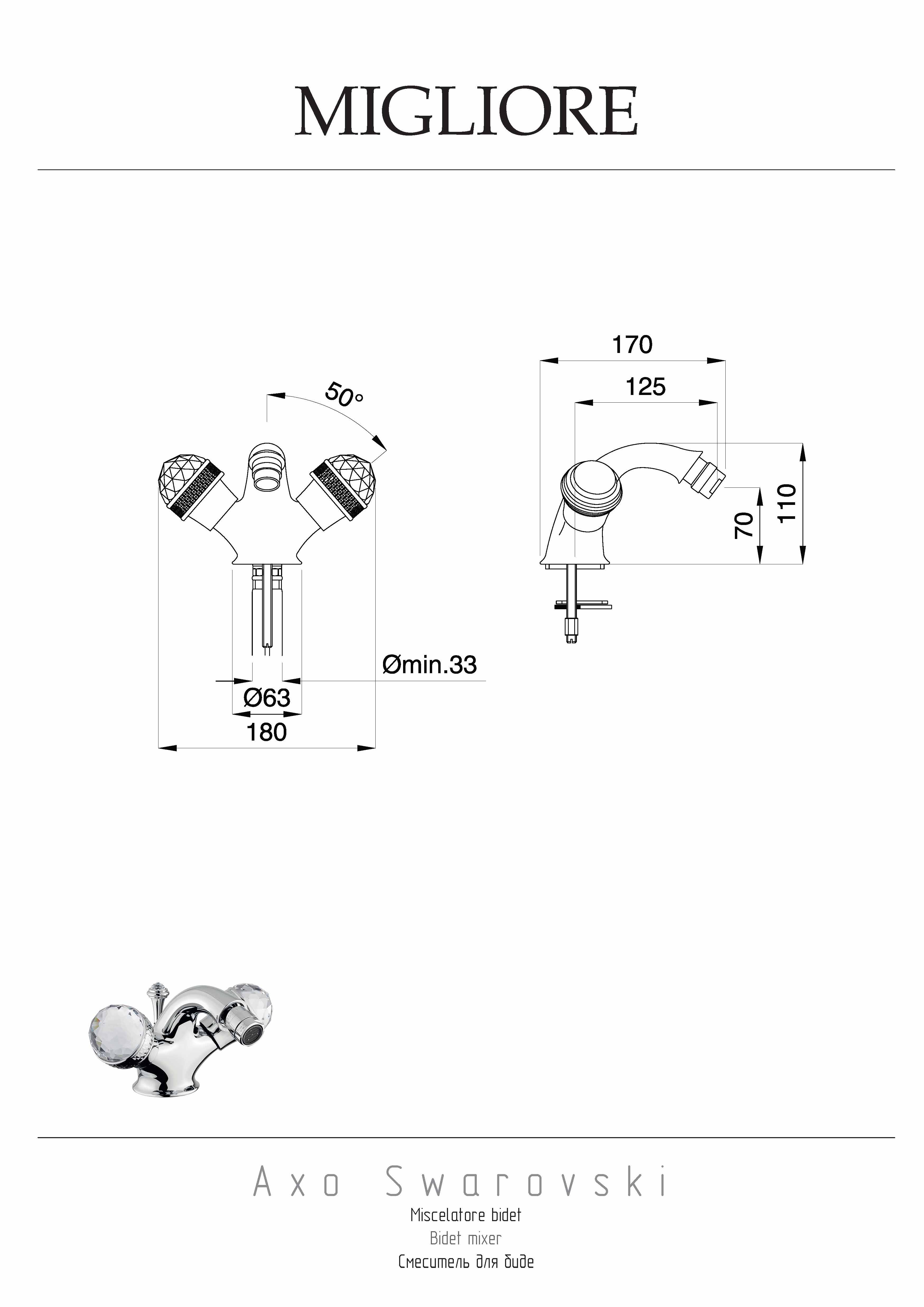 Дополнительная информация: Рекомендуется использовать чистящее средство бренда MIGLIORE для смесителей и аксессуаров с хромированным покрытием.