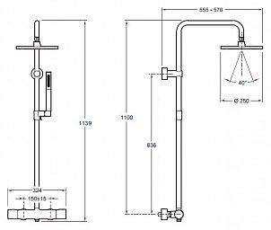 Состав поставки: Душевая стойка, лейка, шланг, верхний душ, смеситель, держатель для душа, инструкция