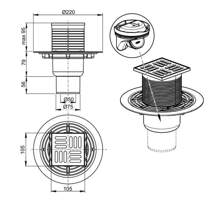 Состав поставки: Сливной трап, решетка, Инструкция