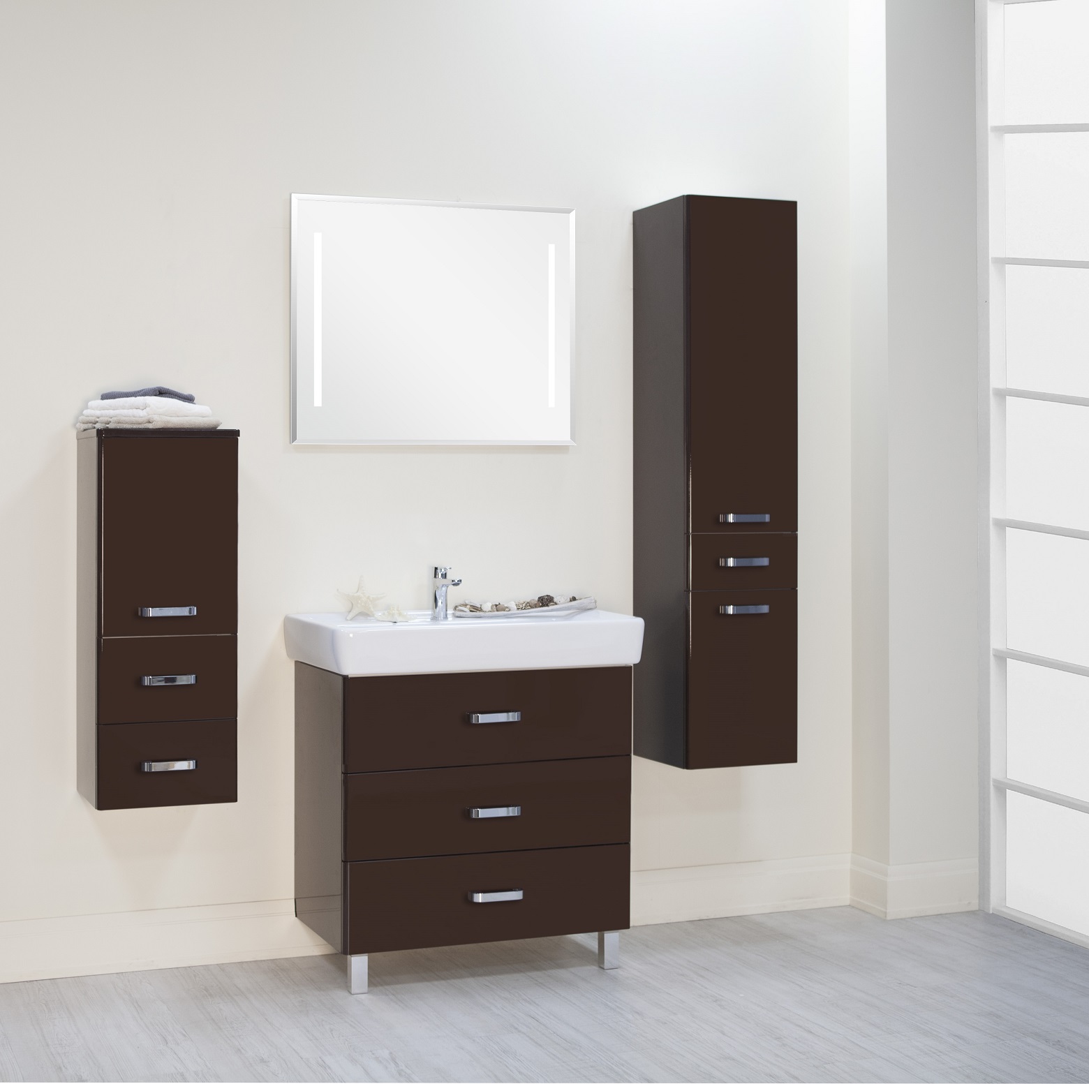 Состав поставки: Ручка – 3, ножка – 2, зеркало – 1, ящик – 3.